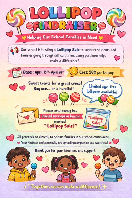 Hi Fisher Families. Please review the flyer giving information about an upcoming Fundraiser at Fisher Elementary to help support some needing families in our community. Thank you Mr. Murphy